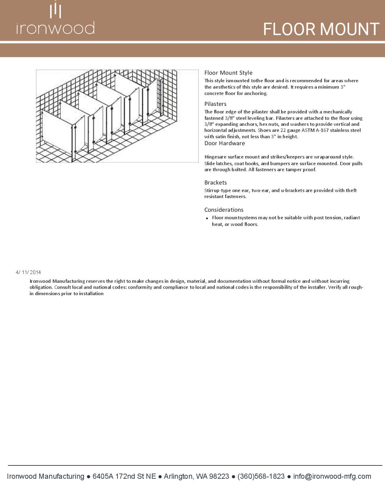 Explore Ironwood Manufacturing's cast stainless steel hardware for toilet partitions. Technical data covers pilasters, door hardware, and theft-resistant brackets.